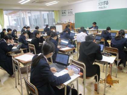 1月19日(金)2年生「修学旅行班別学習コース調べ」 公開日 2024/01/19 更新日 2024/01/19 2年生 本日5時間目、修学旅行へ向けての調べ学習を行いました。 それぞれが学びたいこと、行きたいところなどを考えながら、クロムブックを使って、ルートやかかる時間などを調べました。 来年度が楽しみですね。