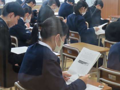 1月22日(月)3年生「私立入試直前!実力テスト」