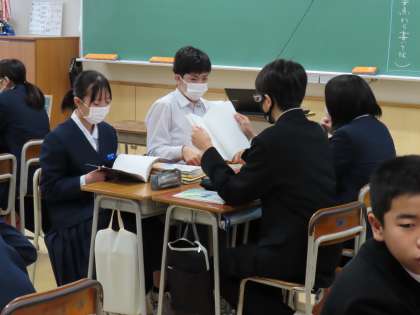 1月22日(月)2年生「授業の様子」 公開日 2024/01/22 更新日 2024/01/22 2年生 2時間目の授業の様子です。 (写真上)1組数学「平行四辺形であることを証明しよう」 (写真中)2組国語「活用形/活用の種類とは何か説明しよう」 (写真下)3組英語「World Heritage Sites 本文を読み取ろう」