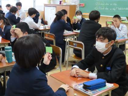 1月23日(火)2年生「授業の様子」 公開日 2024/01/23 更新日 2024/01/23 2年生 2時間目の授業の様子です。 (写真上)1組保体「バドミントン」 (写真中)2組音楽「旋律と歌詞を覚えよう」 (写真下)3組英語「自分のカードを自分で当てられるようになろう」