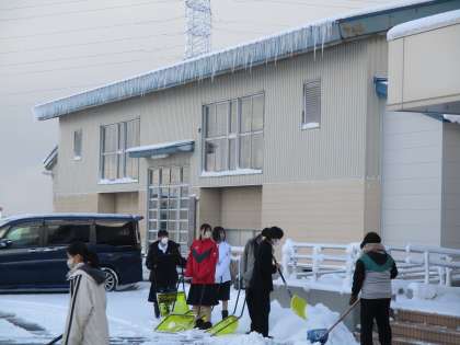1月25日(木)1年生「除雪当番」 公開日 2024/01/25 更新日 2024/01/25 1年生 1組が除雪をしてくれました。 長いつららが下がる冷たい朝でした。 きれいになりました。 ありがとう。