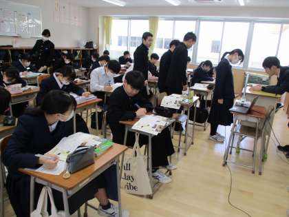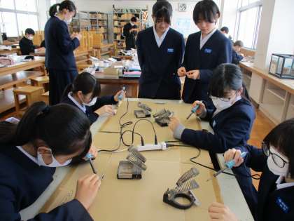 1月25日(木)2年生「授業の様子」 公開日 2024/01/25 更新日 2024/01/25 2年生 (写真上)1組(社会)東北地方の工業がどのように発展し人々にどんな影響を与えたか、各自で調べて先生にチェックしてもらっています (写真中)2組(理科)回路によって電気の流れる様子がどのように異なるか調べています (写真下)3組(技術)安全に正確にライトの制作を進めています。