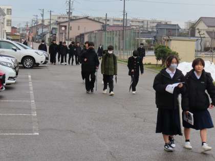 2月1日(木)「登校風景」 公開日 2024/02/01 更新日 2024/02/01 学校生活 おはようございます。 今日から2月。 朝はさほどでもないですが、このあと気温が下がるそうです。 私立高校一般入試のため3年生の多くが登校しないので、朝の玄関前はいつもよりもまばらです。 今月もよろしくお願いします。