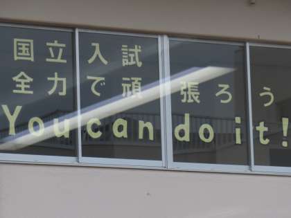 3階の窓のメッセージが変わっていました。 国立高専は、今週末が学力選抜です。 がんばれ!