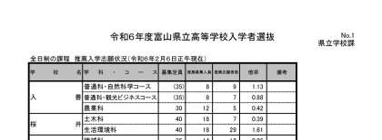 リンク:全日制の課程 推薦入学者選抜志願状況