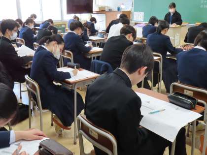 2月8日(木)3年生「授業の様子」 公開日 2024/02/08 更新日 2024/02/08 3年生 (写真上)1組社会「模擬テスト」 (写真中)2組数学「標本調査プリント学習」 (写真下)3組国語「『おくのほそ道』とはどんな作品かを読み取ろう」