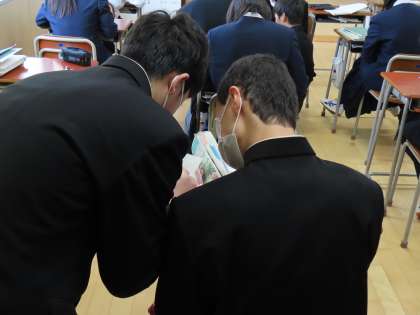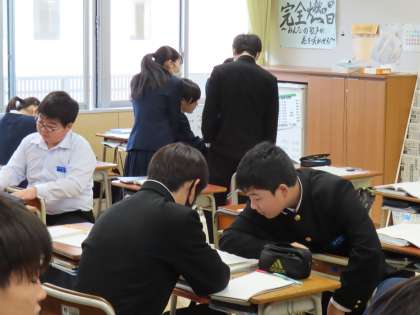 2月8日(木)2年生「授業の様子」 公開日 2024/02/08 更新日 2024/02/08 2年生 2時間目の様子です。 (写真上)1組英語「行ってみたい世界遺産を発表しよう」 (写真中)2組理科「電流と電圧の値から、抵抗値を求めよう」 (写真下)3組数学「面積を変えずに、図形の形を変えよう」