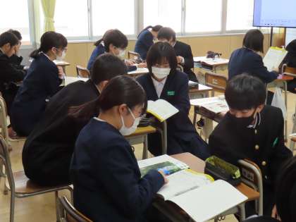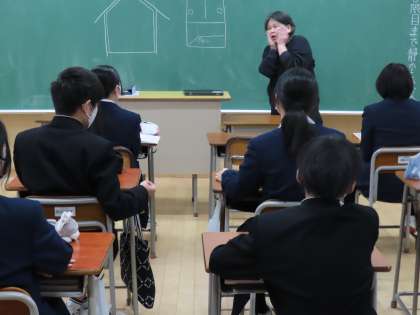 2月9日(金)1年生「授業の様子」 公開日 2024/02/09 更新日 2024/02/09 1年生 2時間目の様子です。 (写真上)1組英語「Mr.Cookロンドンの度 なぜミュージカルを見たかったのだろう」 (写真中)2組数学「立体の体積を求めよう」 (写真下)3組家庭「家族の住まいの安全・安心」
