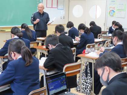 2月14日(水)1年生「授業の様子」 公開日 2024/02/14 更新日 2024/02/14 1年生 3時間目の様子です。 (写真上)1組数学「立体の表面積を求めよう」 (写真中)2組保体「バドミントン」 (写真下)3組技術「情報モラルを知ろう」