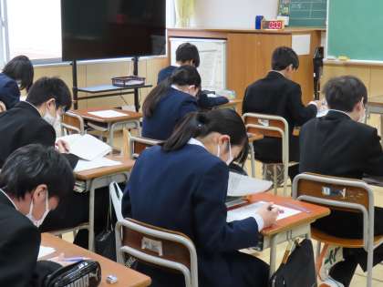 2月15日(木)1年生「授業の様子」 公開日 2024/02/15 更新日 2024/02/15 1年生 3時間目の授業です。 (写真上)1組国語「訓点とは?」 (写真中)2組社会 (写真下)3組総合的な学習の時間「私ってどんなひと?」