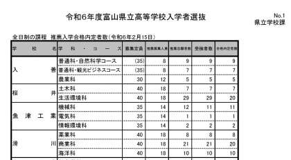 標記の資料が発表されました。 以下のリンクを参照ください。 リンク:県立推薦合格内定者数