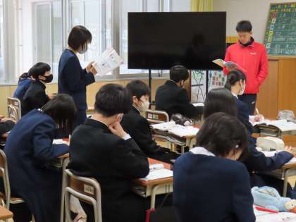 2月20日(火)1年生「授業の様子」 公開日 2024/02/20 更新日 2024/02/20 1年生 3時間目の様子です。 (写真上)1組保体「心と体の関わり」 (写真中)2組英語「過去のことについてたずねたり、答えたりする用法をバッチリにしよう」 (写真下)3組技術「スクラッチで目的にあったプログラムを作ろう」