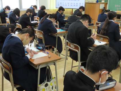 3月4日(月)1年生「授業の様子」 公開日 2024/03/04 更新日 2024/03/04 1年生 3時間目の様子です。 (写真上)1組音楽「旋律を思い出す・歌詞を覚える」 (写真中)2組数学「データを分かりやすくまとめよう」 (写真下)3組保体「卓球」