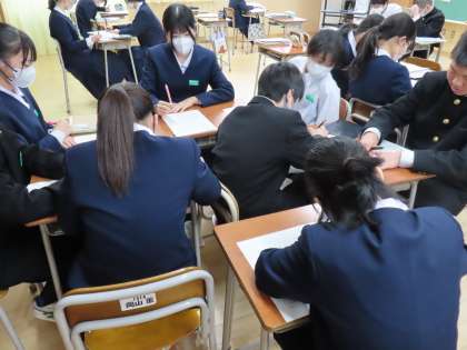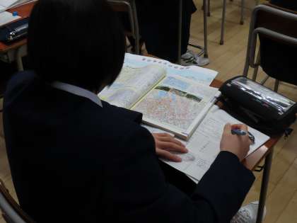 3月5日(火)1年生「授業の様子」 公開日 2024/03/05 更新日 2024/03/05 1年生 3時間目の様子です。 (写真上)1組社会「地形図の見方・使い方を知ろう」 (写真中)2組音楽「旋律を思い出そう、歌詞を覚えよう」 (写真下)3組理科「密度、濃度を復習しよう」