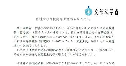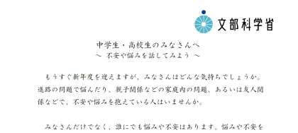 ★文部科学大臣メッセージ「〜不安や悩みがあったら話してみよう〜」