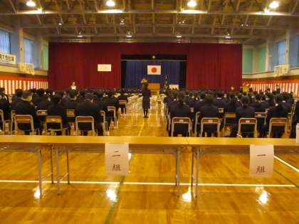 明日の卒業証書授与式の予行を行いました。気温があまり上がらない中でしたが、集中力を切らさず緊張感をもって取り組みました、