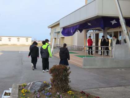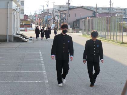 おはようございます。 卒業式の朝。在校生が登校しています。 今日もよろしくお願いします。