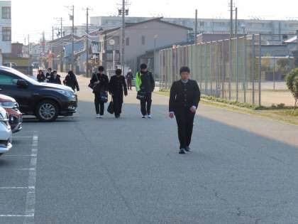 3月15日(金)「登校風景」 公開日 2024/03/15 更新日 2024/03/15 学校生活 おはようございます。 今日からは1、2年生だけの朝です。 風が冷たいですね。 今日もよろしくお願いします。