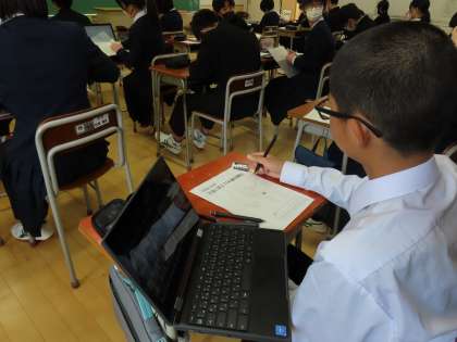 4月8日(月)2年生「学級活動」 公開日 2024/04/09 更新日 2024/04/09 2年生 (写真上)1組 「社会に学ぶ『14歳の挑戦』」のしおりを受け取りました。5日間の活動を思い描きながらオリジナルのイラストを描きました。 (写真中)2組 1年間の経験をもとに知恵を出し合って、掃除の仕方についてみんなで話し合いました。 (写真下)2年3組 卒業後の進路と関連付けた2年生の学習について、担任の先生の説明を聞きました。