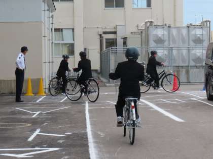 6限は、1年生対象の自転車実技練習でした。練習コースには自動車が置かれ、障害物があると安全確認が難しくなることを実感しました。