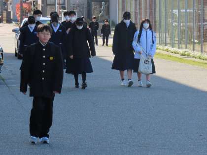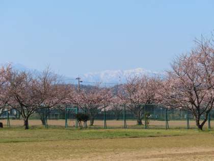 4月10日(水)「登校風景」 公開日 2024/04/10 更新日 2024/04/10 学校生活 おはようございます。 昨日とはうってかわって、すっきりとした青空の朝となりました。気持ちがいいですね。 グラウンドの向こうには、桜並木と遠くの山並みの二重奏。 今日もよろしくお願いします。