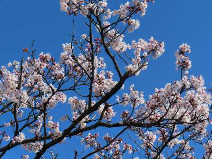 満開の桜が青空に映えます。