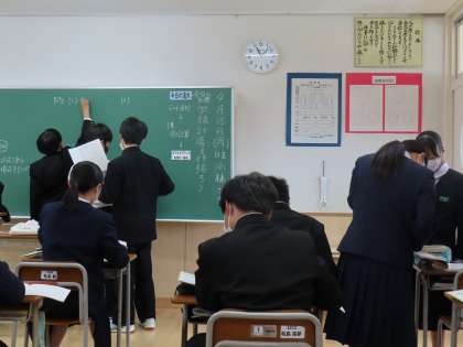 4月15日(月)2年生「授業の様子」 公開日 2024/04/15 更新日 2024/04/15 2年生 3時間目の様子です。 (写真上)1組保体「スポーツテスト」 (写真中)2組英語「Unit 0 スタート」 (写真下)3組数学「文字を使った式をを分類しよう」