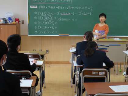 4月17日(水)3年生「授業の様子」 公開日 2024/04/17 更新日 2024/04/17 3年生 4時間目の様子です。 (写真上)1組社会「第一次世界大戦中の、日本とロシアの動きは?」 (写真中)2組社会「日本は、第一次世界大戦にどのように関わったのだろう」 (写真下)3組数学「多項式と多項式の乗法をよりすばやくやる方法を考えよう」