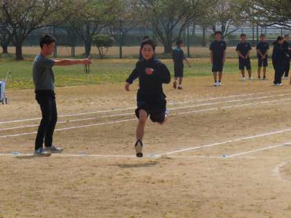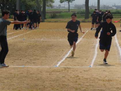 (写真上・中)1・2組合同保体「50m走」