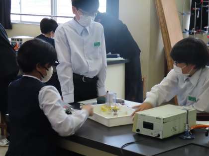 (写真下)3組理科「水を分解すると何が出てくるか」