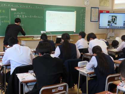 (写真上)1組社会「第二次世界大戦中の日本の政治や経済はどう変化したか」