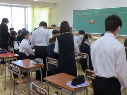 4月26日(金)3年生「授業の様子」 公開日 2024/04/26 更新日 2024/04/26 3年生 1時間目の様子です。 (写真上)1組保体「スポーツテスト 50m走」 (写真中)2組数学 (写真下)3組英語「自分を幸せにしてくれるものが何か言えるようになろう」