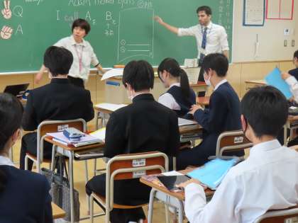 (写真下)3組英語「友達の1人を選び、その人をどう呼ぶのかパートナーに教えてあげよう」