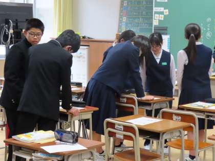 5月8日(水)2年生「授業の様子」 公開日 2024/05/08 更新日 2024/05/09 2年生 3時間目の様子です。 (写真上)1組国語「考えながら話を聞く」 (写真中)2組数学「数の性質を説明しよう」 (写真下)3組理科「分子をつくる物質とつくらない物質をまとめよう」