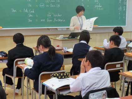 (写真上)1組英語「すでに話題になったものについて言うときの言葉を覚えよう」