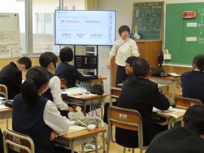 5月13日(月)2年生「授業の様子」 公開日 2024/05/13 更新日 2024/05/13 2年生 3時間目の授業です。 (写真上)1組社会「日本の工業の特徴と課題は?」 (写真中)2組英語「機内放送に挑戦」 (写真下)3組保体「スポーツテスト」