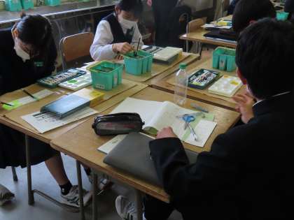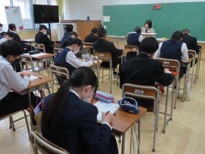 5月21日(火)2年生「授業の様子」 公開日 2024/05/21 更新日 2024/05/21 2年生 3時間目の様子です。 (写真上)1組美術「オリジナルドリンクラベルをつくろう」 (写真中)2組数学「単元末テスト」 (写真下)3組英語「友達と文を完成させよう」
