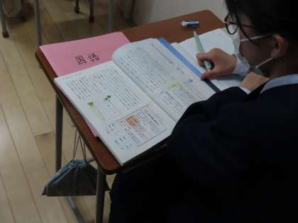 (写真上)1組国語「文章の中心となる部分を探し、捉えよう」