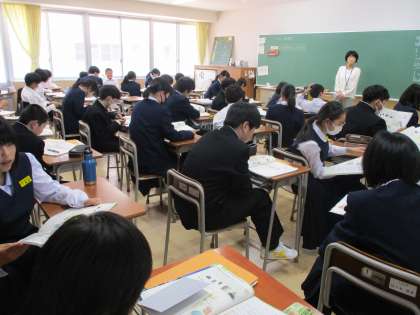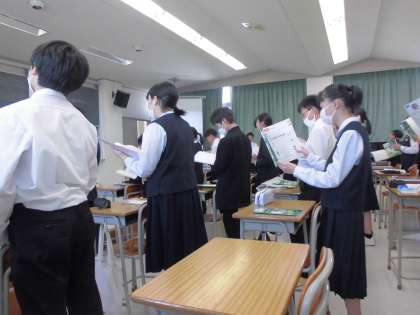 (写真下)2組英語「2人の対話を23秒以内で読む」