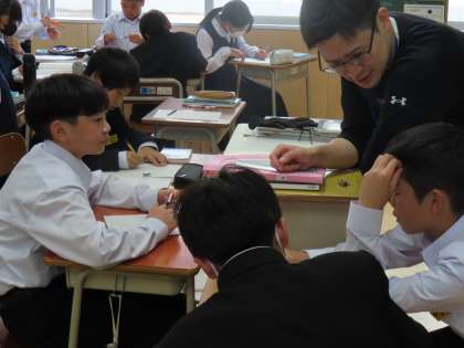 (写真下)2組数学「これまでの計算を振り返りレポートにしよう」