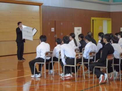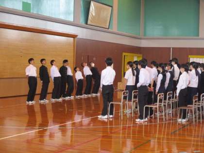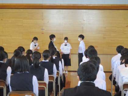5月24日(金)2年生「社会に学ぶ『14歳の挑戦』激励会」 公開日 2024/05/24 更新日 2024/05/24 2年生 いよいよ来週月曜日から、社会に学ぶ『14歳の挑戦』が始まります。 5時間目に激励会を行いました。 5日間精一杯がんばってきます。 (写真上)生徒信条の朗唱 (写真中)実行委員会から活動中の注意事項の説明 (写真下)校長先生からの激励