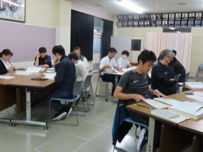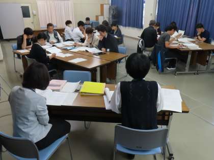 生徒が下校した後、授業づくりについて職員研修会をもちました。