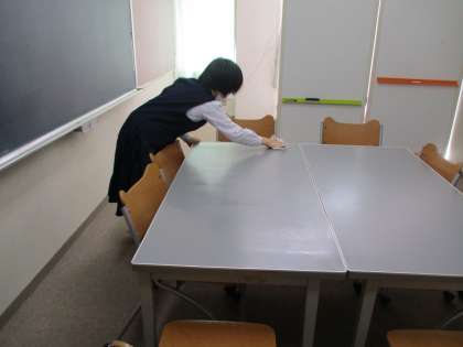 5月31日(金)2年生「社会に学ぶ『14歳の挑戦』」その2 公開日 2024/05/31 更新日 2024/05/31 2年生 事業所が定休日の生徒は学校で活動しています。 (写真上)特別教室の清掃 (写真下)掲示物の作成