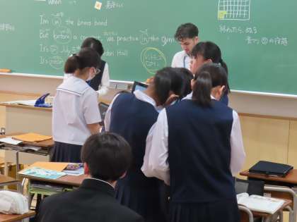 (写真上)1組英語「メグとジョシュの対話を28秒以内に読もう」