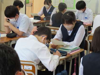 6月6日(木)3年生「授業の様子」 公開日 2024/06/06 更新日 2024/06/07 3年生 1時間目の2組は英語。 学習課題は「自分の『〇◯歴』を伝えたり聞いたりできるようになろう」です。 現在完了形を使って自分が好きなものややってきていることを伝えます。 ペアを何度も変えながら自分のことを伝えたり相手のことを聞き取ったりしました。 最後は、聞き取った相手のことを他の相手に伝えていました。