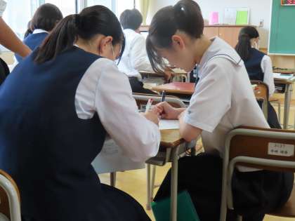 単元末テストが返却され、見直しをしました。