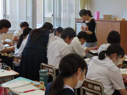 みんなで根号を含む式の計算を確認しながら解いたあと、応用問題にチャレンジしました。