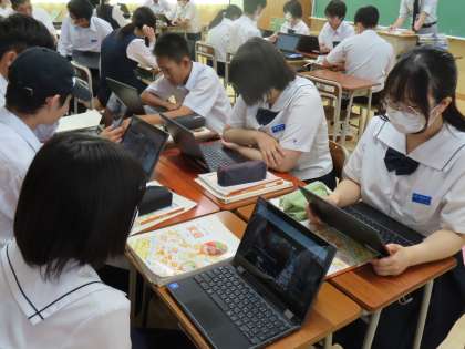 6月12日(水)3年生「授業の様子」 公開日 2024/06/12 更新日 2024/06/13 3年生 6時間目の様子です。 (写真上)1組英語「What can we do for endagered animal?」 (写真中)2組数学「根号を含む式の乗除を工夫してやろう」 (写真下)3組家庭「幼児のことをよく知ることのできるふれあい体験にするために、こども園訪問の見通しをもとう」