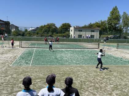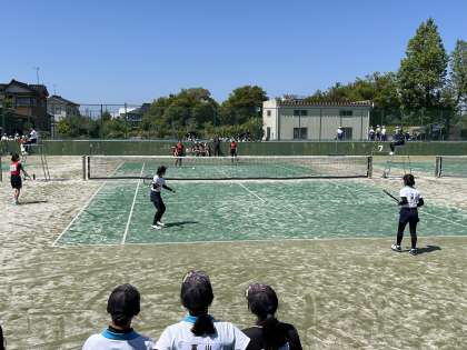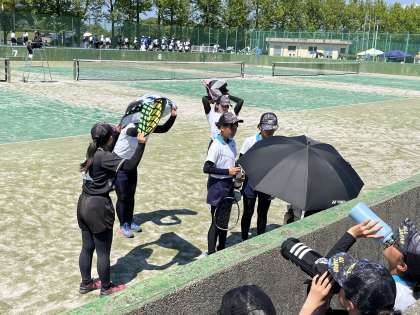 6月14日(金)「富山市中学校総合選手権大会」ソフトテニス部女子 公開日 2024/06/15 更新日 2024/06/15 部活動 岩瀬スポーツ公園で行われたソフトテニス競技。 この日は団体戦です。 本校ソフトテニス部女子は順調に勝ち進み、準決勝進出! 残念ながら時間切れとなり、準決勝からは日曜日に持ち越しとなりました。 準決勝でも力を発揮してくれることを期待しています。