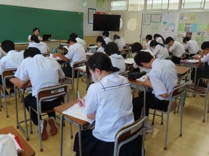6月20日(木)3年生「授業の様子」 公開日 2024/06/20 更新日 2024/06/20 3年生 2時間目の様子です。 (写真上)1組社会 (写真中)2組美術「さまざまな遠近法」 (写真下)3組数学「平方根の総まとめをしよう」